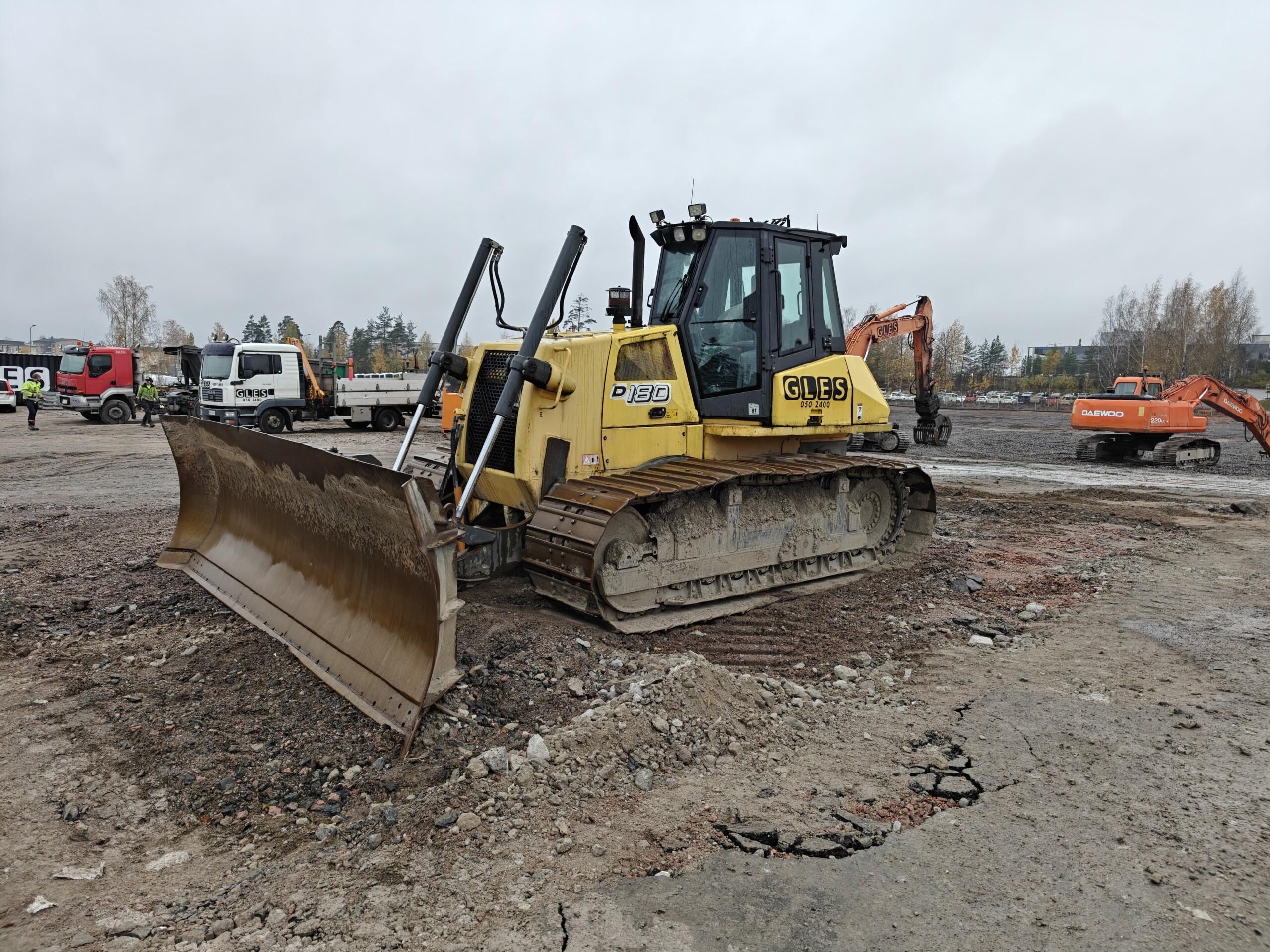 D180:n raskas alusta ja kestävä rakenne tekevät siitä täydellisen valinnan niin maansiirtoon, tienrakennukseen kuin vaativaan työmaakäyttöönkin.