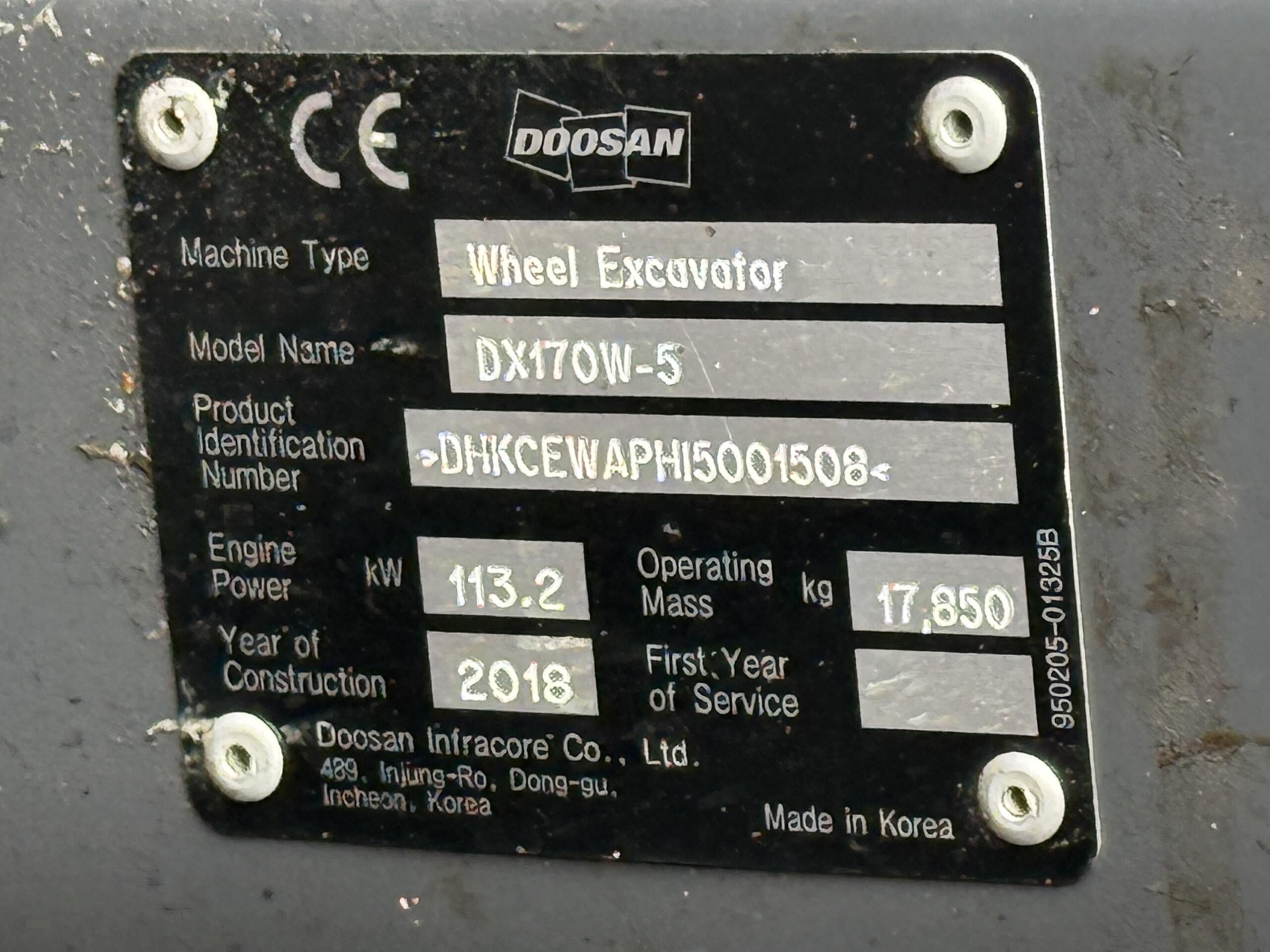 Övrig informationDoosan DX170W