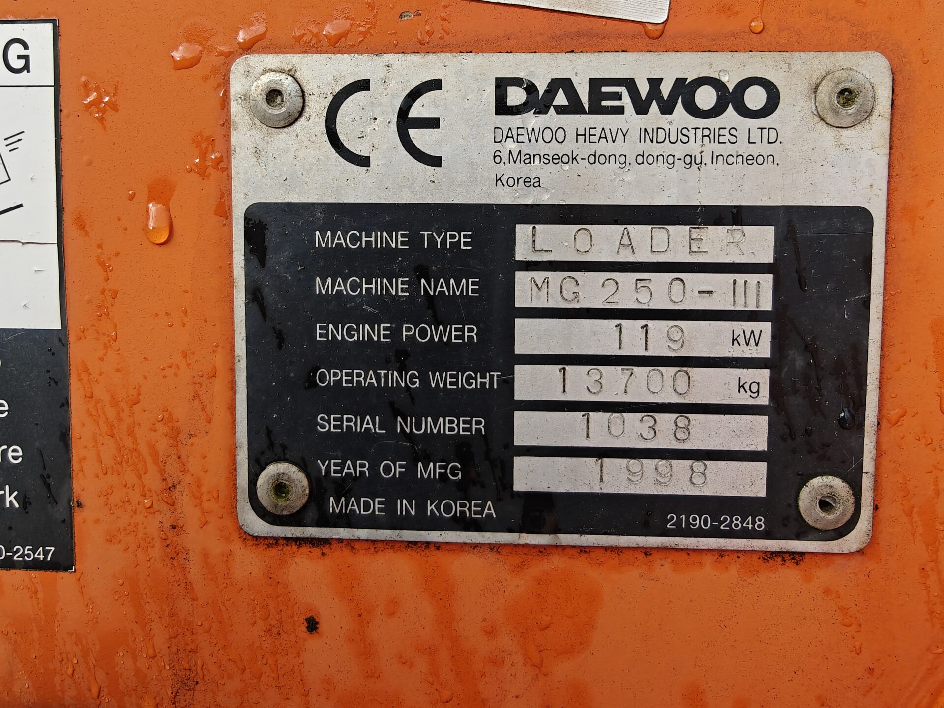 Övrig informationDaewoo MEGA-MG250-III-4X4/302 pyöräkuormaaja