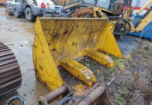 Kone myydään kauhan kanssa.