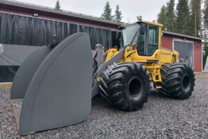 Tarvittaessa löytyy tilalle normirenkaat ja -kauha.