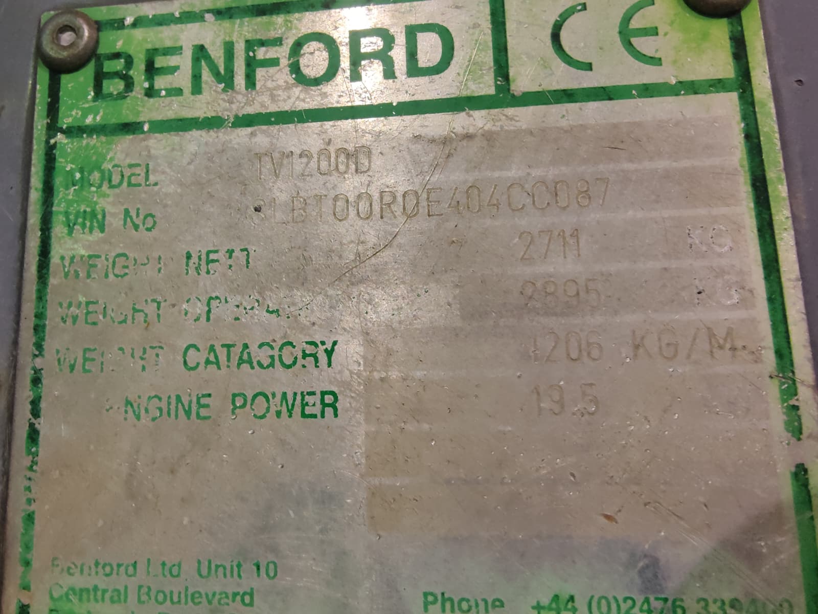 Övrig informationBenford TV1200D Asfalttijyrä
