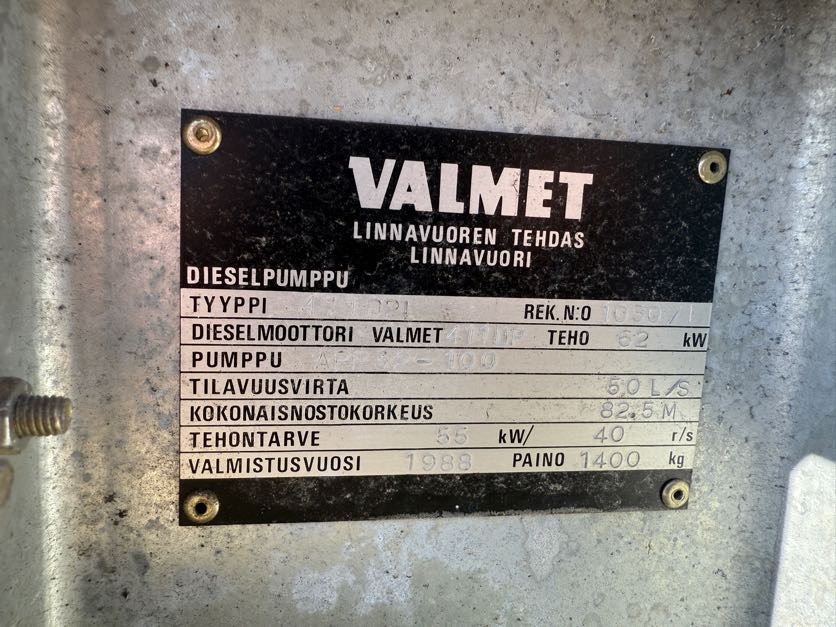 Övrig informationValmet siirrettävä diesel vesipumppu.