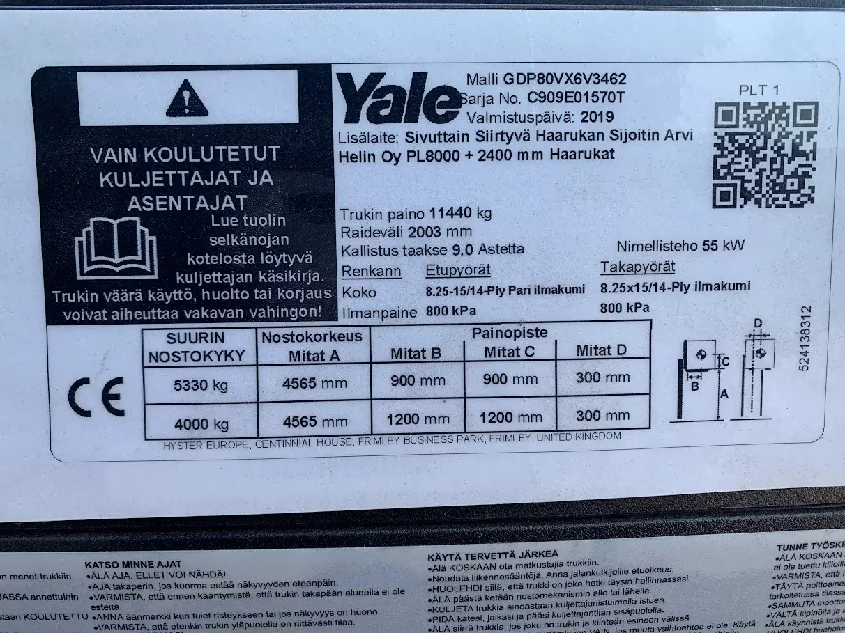 Övrig informationYale GDP80 VX6, 8t nostava diesel trukki