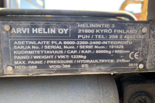 -Arvi Helin asetinlaite leveydellä 2200mm, jossa haarukat mitalla 2400mm