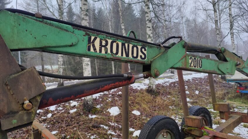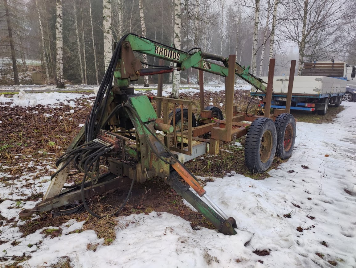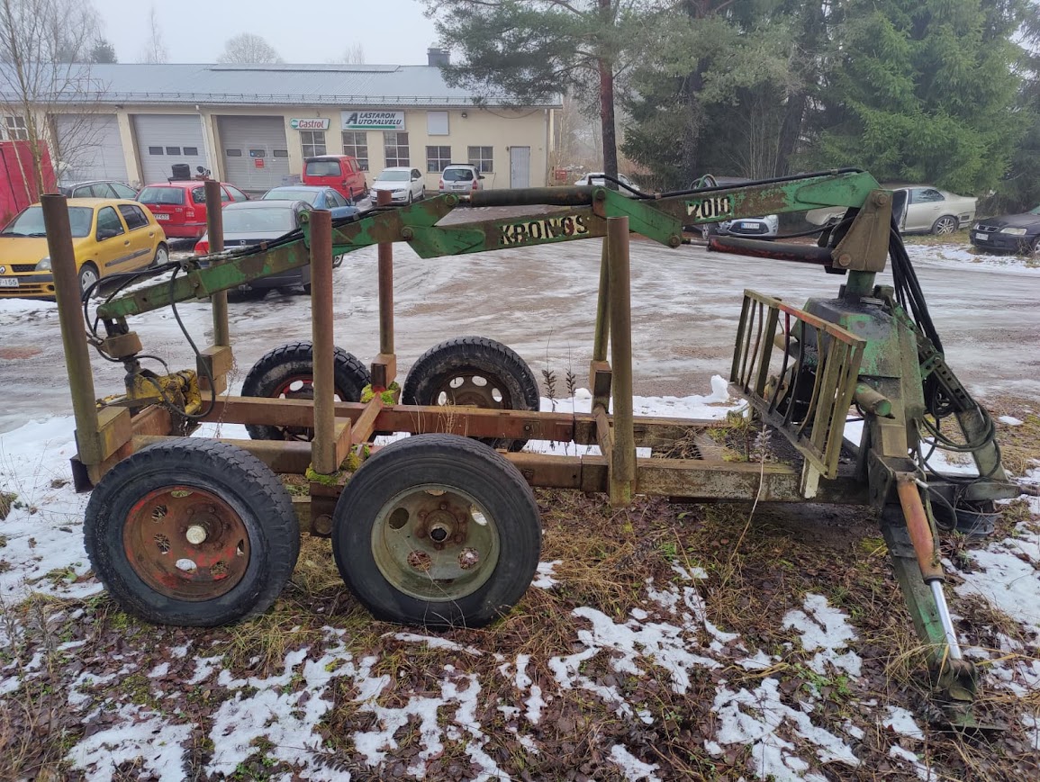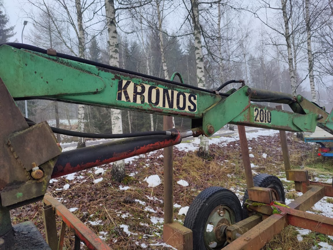 Myydään KRONOS 2010 -kourakuormain telirunkoisella puutavarakärryllä. Monivipuinen venttiilipöytä. Kärry on varustettu vakaajilla. Laitteessa on käytön ja iän tuomaa patinaa.